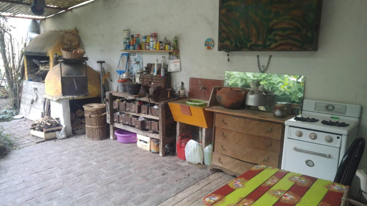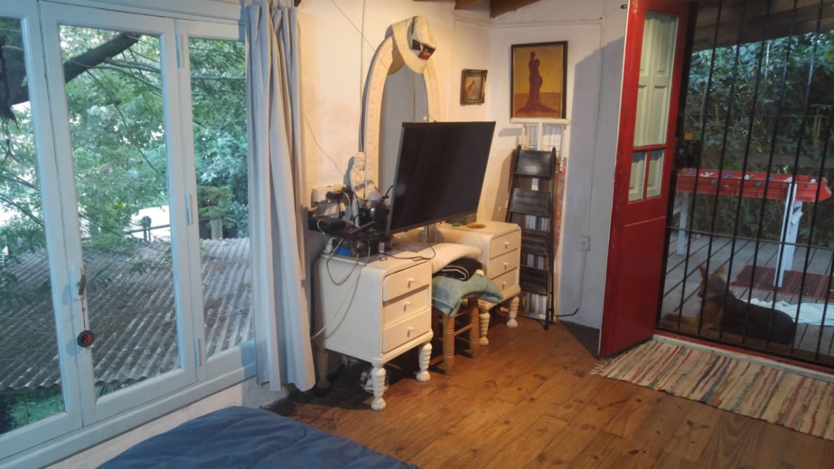 PLANTA BAJA: Living con piso flotante y sótano con igual área que el living, de 70 cm. con salida al frente y entrada principal,(salamandra) - cocina comedor diario con piso cerámico con mueble bajo mesada – (salamandra) - 1 dormitorio con piso de pinotea con placard – baño instalado completo, con ducha y piso cerámico – con galería cubierta con horno a gas – horno de barro – parrilla – jardín con estanque – bombeador al dec de P.A. se puede subir por fuera – terraza – portón corredizo – cochera para 2 ó 3 autos – entrada independiente por el costado - PLANTA ALTA: 2° dormitorio principal con piso de madera y placard, con salida a un deck – galería semi cubierta -
