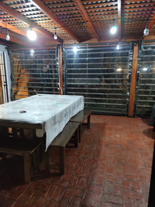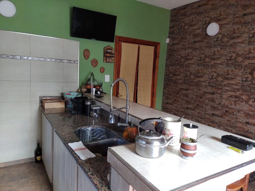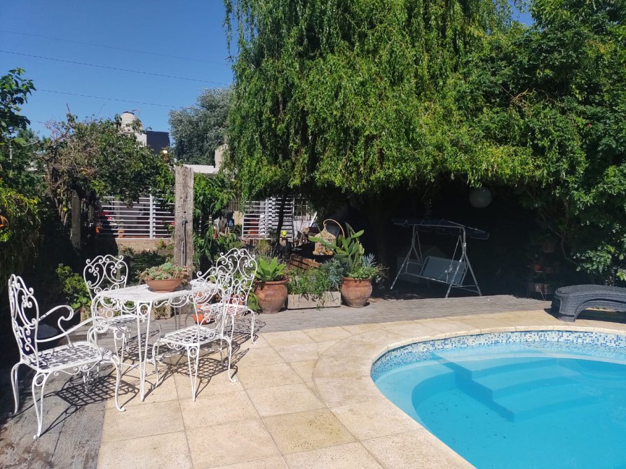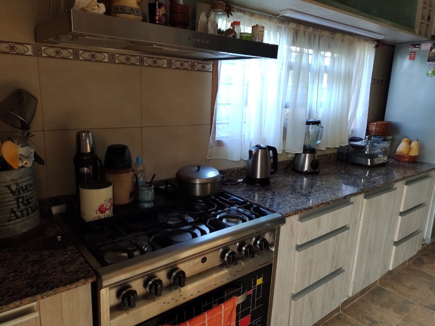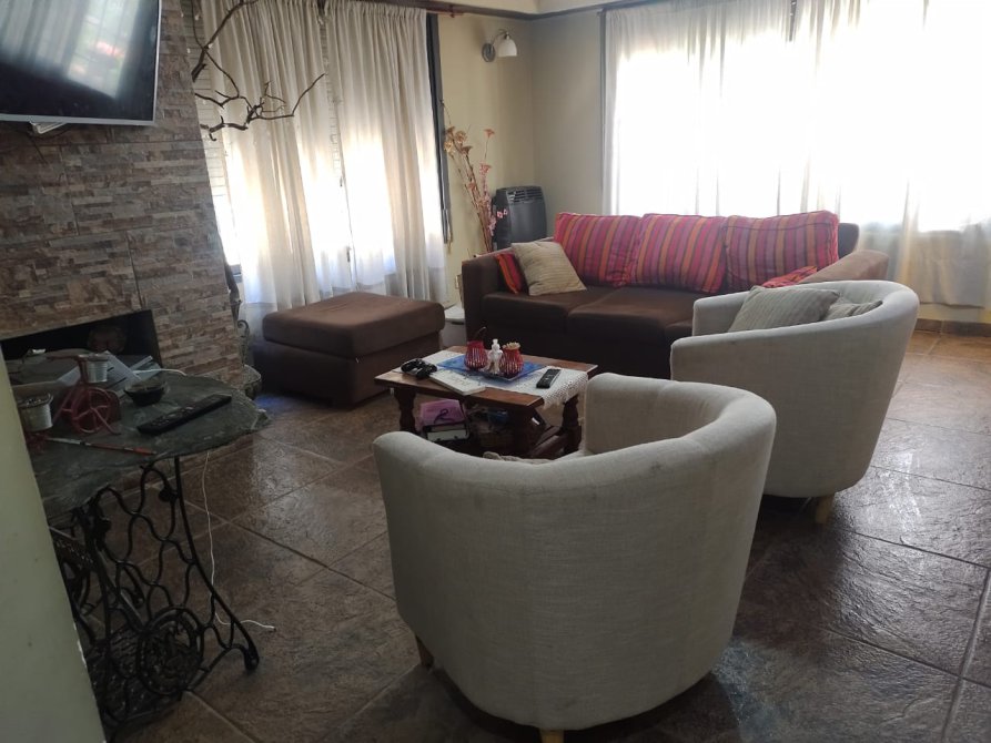Living con piso cerámico, con tiro balanceado y hogar a leña- 3 dormitorios, 2 con pisos de porcelanato y placard, y uno con piso cerámico – cocina con una barra pasa platos, con mueble bajo y sobre mesada, con piso de porcelanato – baño instalado completo con piso de porcelanato- galería cubierta o quincho con parrilla y baño de servicio con piso cerámico-fondo libre, con pileta de de 10 x 4 con deck –al fondo galpón-entrada cubierta para 3 autos con portón automatizado y control remoto-