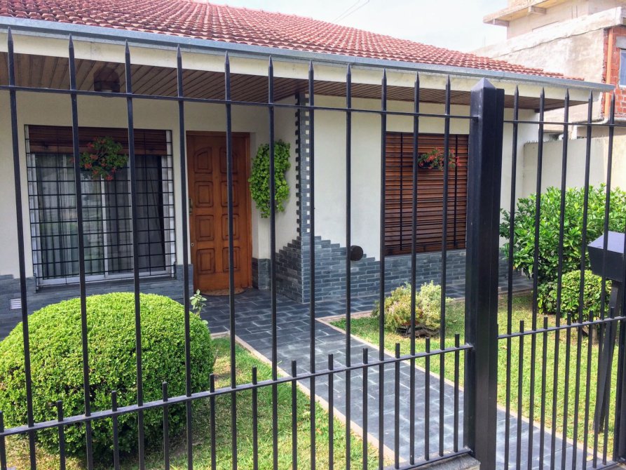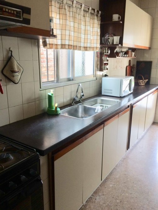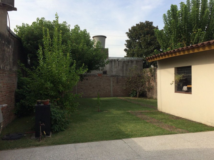 cocina comedor con mueble bajo y sobre mesada, con piso cerámico y lavadero incorporado- comedor diario con piso cerámico con salida al fondo-cuarto de enseres-garage cubierto jardín al frente y fondo libre-parrilla-galería semicubierta