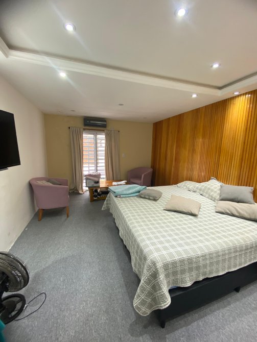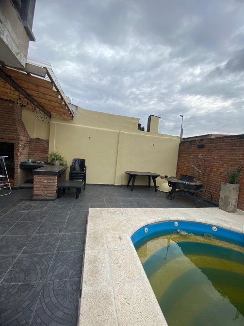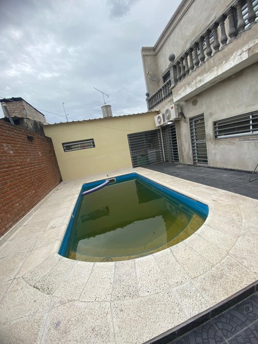 Patio amplio con pileta de natación con una profundidad de1.5, mide 2x5 mtrs. con solárium, con su respectivo equipo de filtrado, parrilla, garage cubierto para 2 o 3 autos.