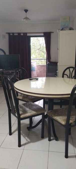 Amplio comedor diario: Con pisos cerámicos y un balcón que da directamente a un parque, perfecto para disfrutar de comidas con vistas despejadas.