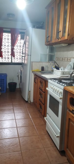 Cocina: Equipada con muebles bajo y sobre mesada y pisos cerámicos.