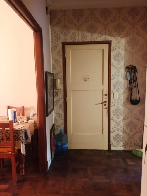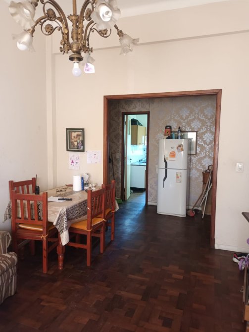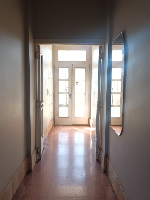 Al entrar, te encuentras con un hall que da paso a un luminoso living-comedor con piso de madera.